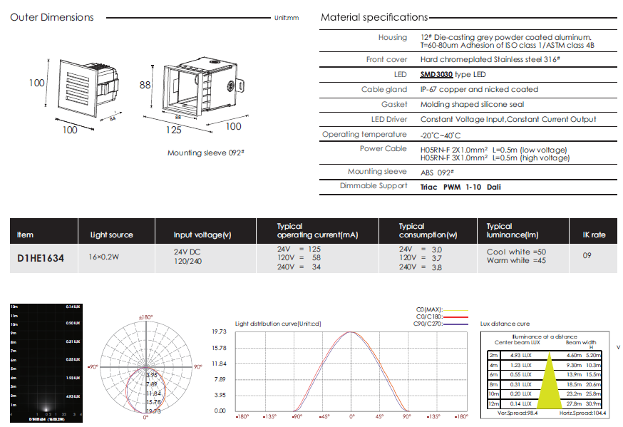 >> Diffused Beam Recessed LED Wall Light - D1HE1634