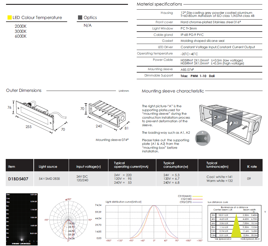 >> Recessed LED Diffused Beam Stair Light and Wall Light - D1FL1014