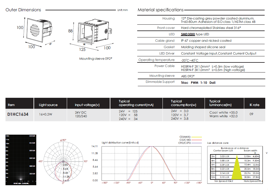 >> Diffused Beam Recessed LED Wall Light - D1HC1634