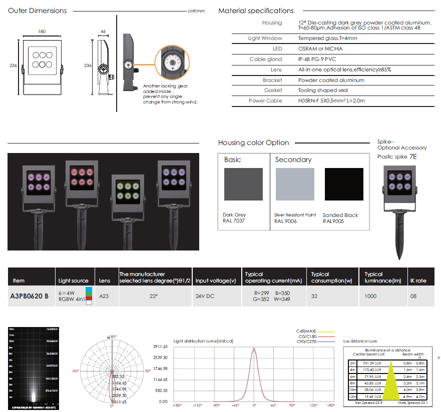 >> RED GREEN BLUE WHITE 4 Color Mixing LED Landscape Light - A3PB0620 B