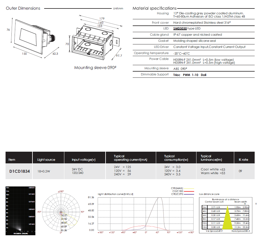 >> Diffused Beam Recessed LED Wall Light - D1CD1834