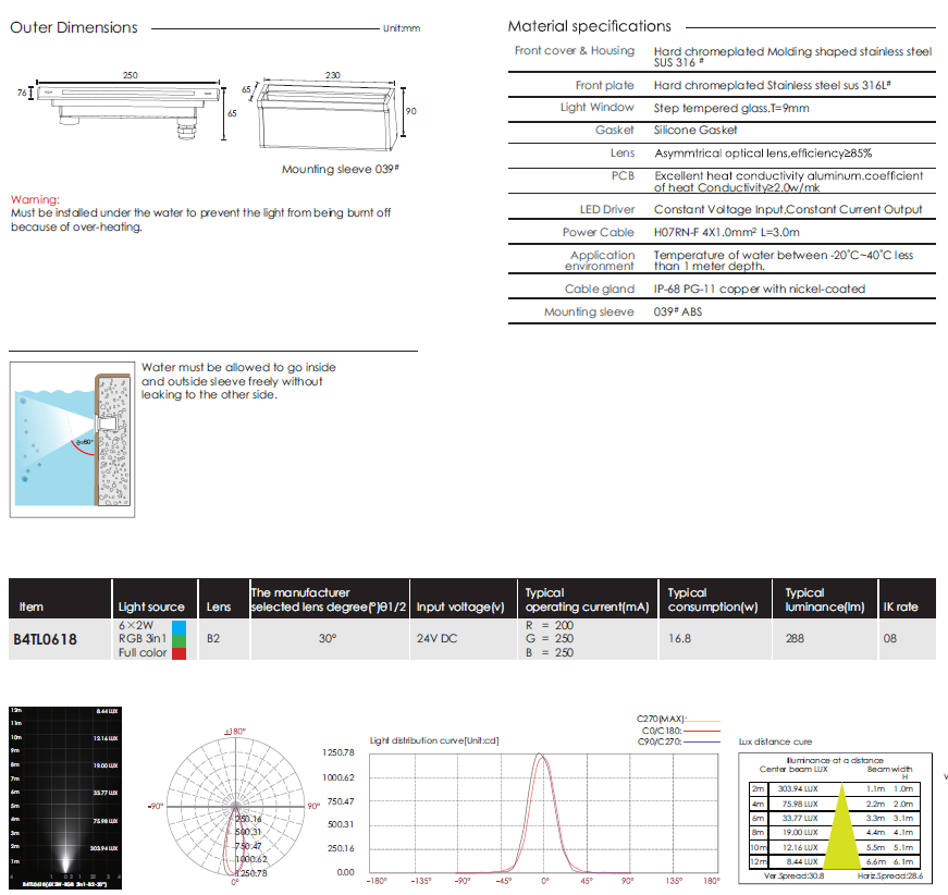 >> Wall Recessed RGB LED Pool Light - B4TL0618