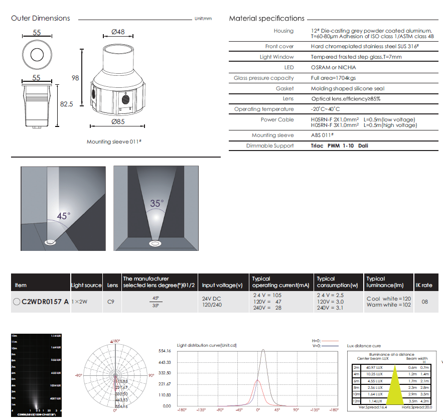 >> Asymmetrical Power LED Inground Light - C2WDR0157 A
