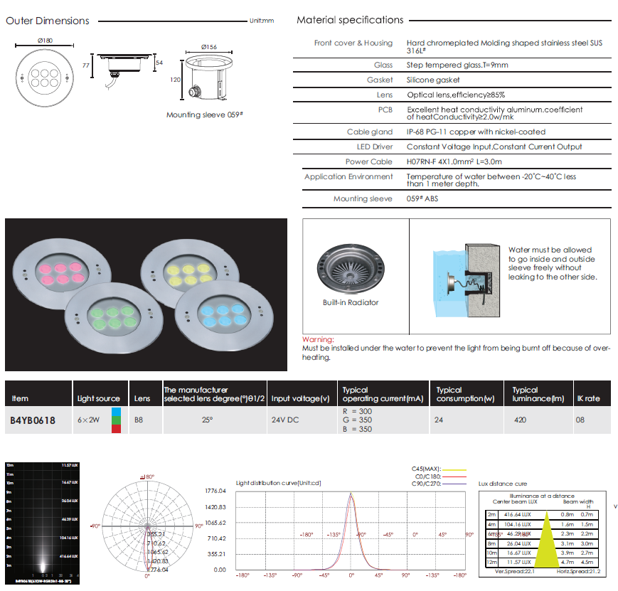 >> Wall Recessed LED RGB Pool Light - B4YB0618