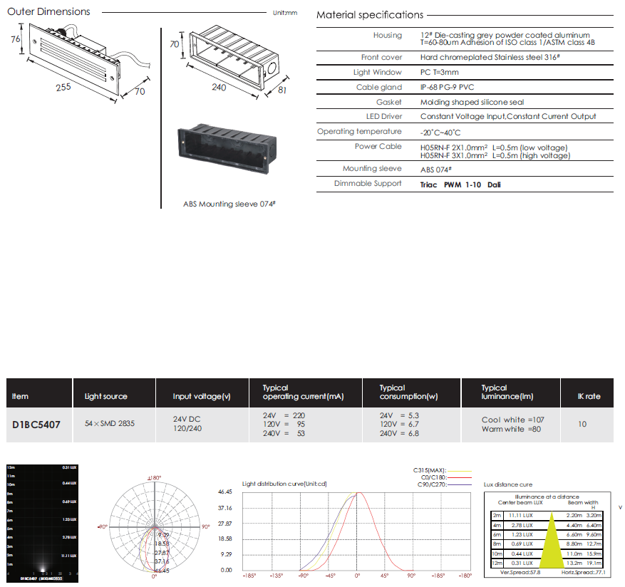 >> Recessed LED Stair Light and Wall Light Stainless Steel Front Cover - D1BC5407