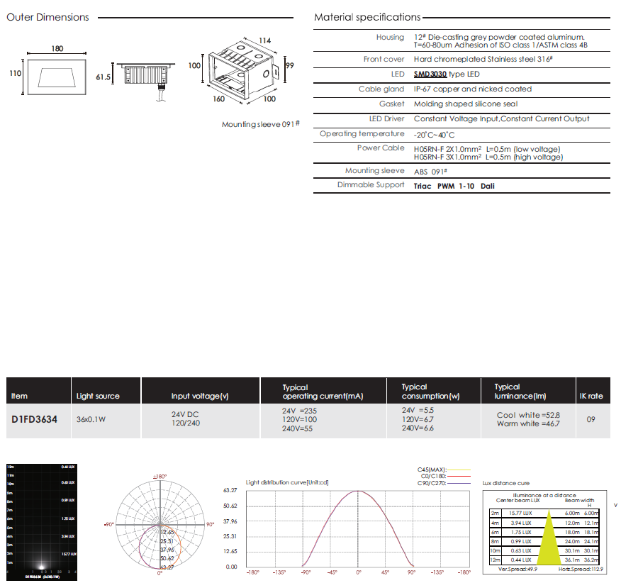 >> Diffused Beam Recessed LED Wall Light - D1FD3634
