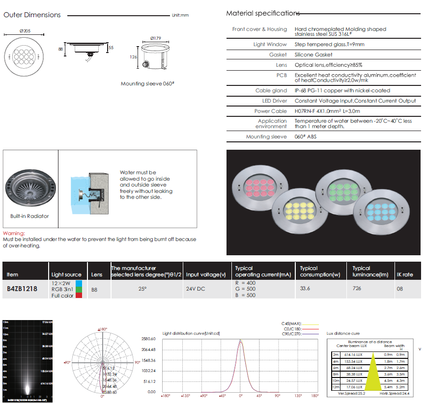 >> Wall Recessed LED RGB Pool Light - B4ZB1218